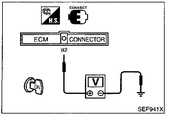 7. Check voltage between ECM terminal 92 (Throttle position sensor signal) and ground under the following conditions.