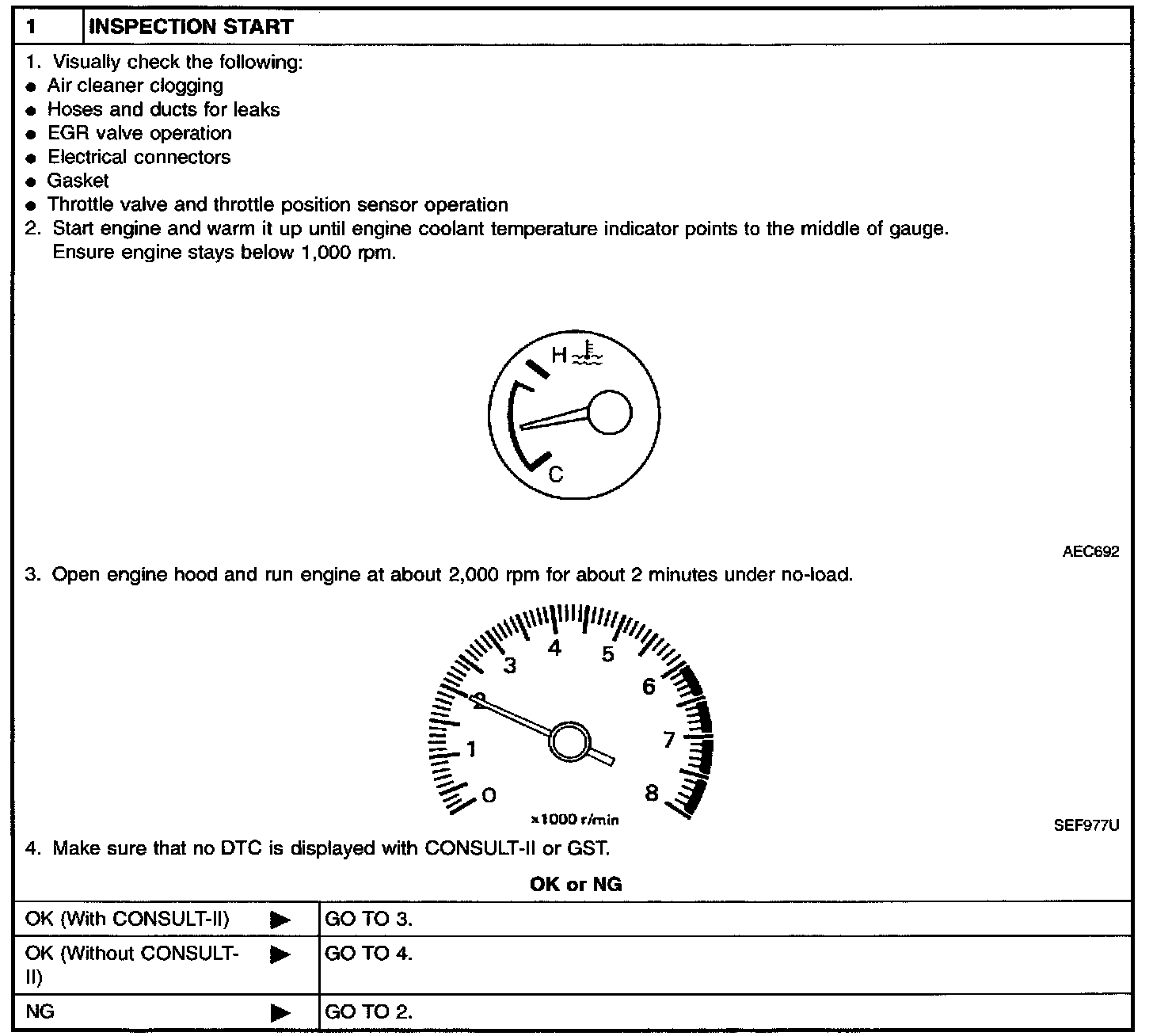 - On models equipped with air conditioner, checks should be carried out while the air conditioner is "OFF".