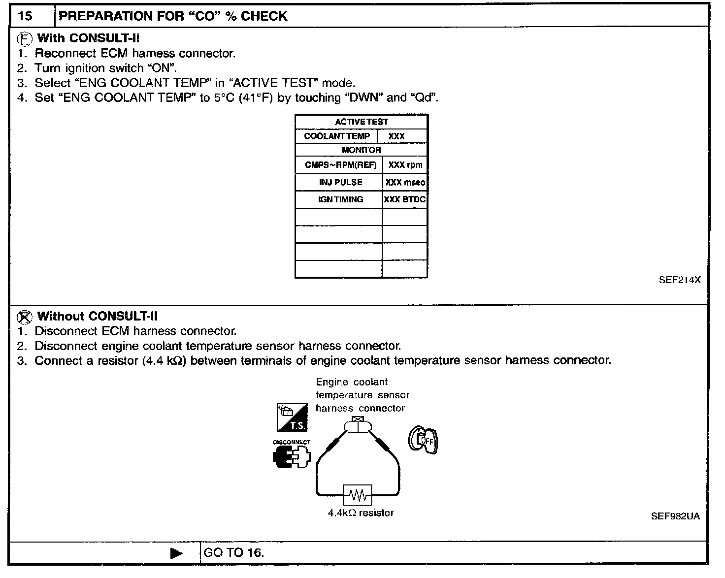 - When measuring "CO" percentage, insert probe more than 40 cm (15.7 in) into tail pipe.
