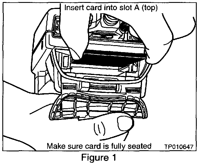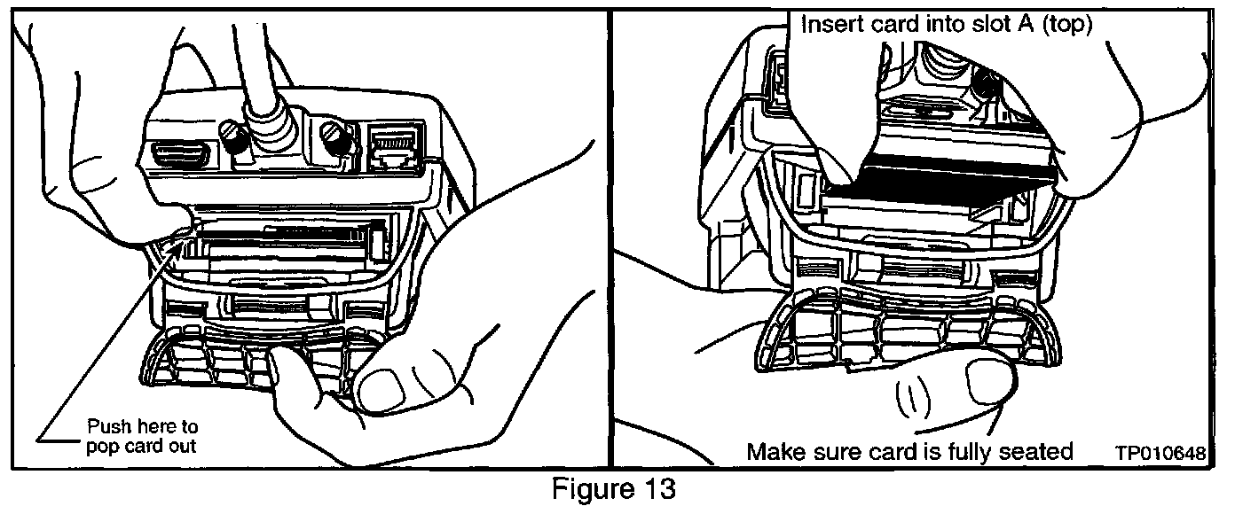 14. Remove the ECU Reprogramming card from slot A of CONSULT-II and install the Diagnostics (red/white) card into slot A (see Figure 13).