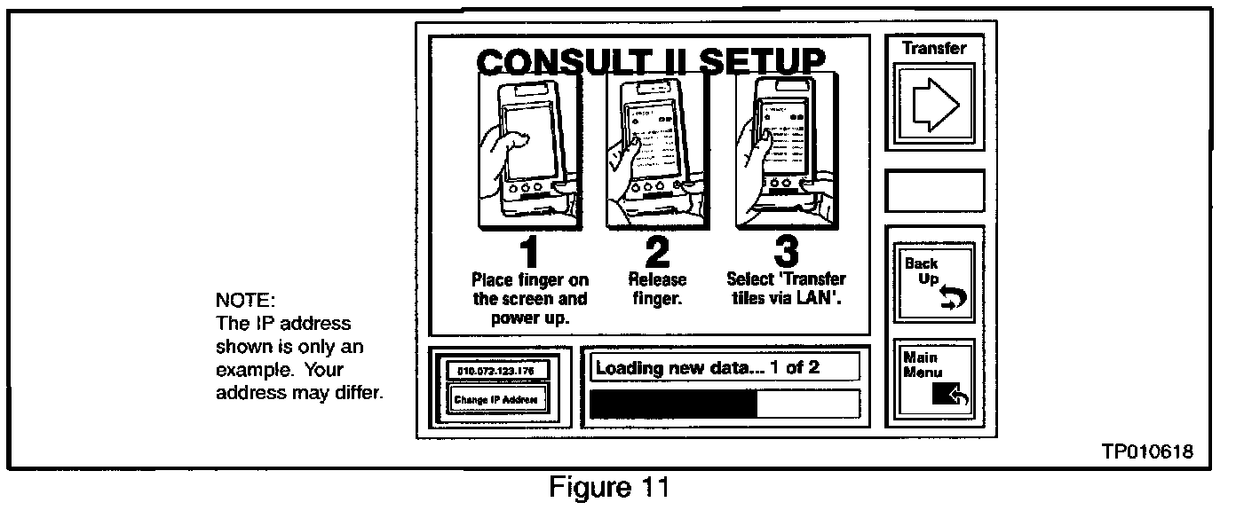 11. When transfer is complete select the "MAIN MENU" button on ASIST. Turn off CONSULT-II and disconnect the AC power cord and the Ethernet cable from CONSULT-II.