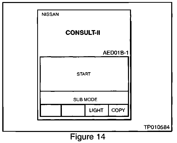 15. Turn "ON" the ignition switch (do not start the engine). CONSULT-II will turn on automatically (see Figure 14).