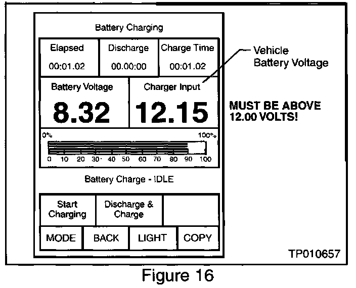 A. If the vehicle's battery charge ("Charger Input") is less than 12.0 volts: