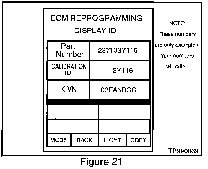 31. Press "CHECK ECM P/N" to confirm (i.e., take note of) the ECM part number on the vehicle to be reprogrammed (see Figure 21).
