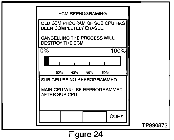 36. Press "START". After a moment the window shown in Figure 24 will appear. CONSULT-II will now turn off its screen backlight and reprogram the ECM.