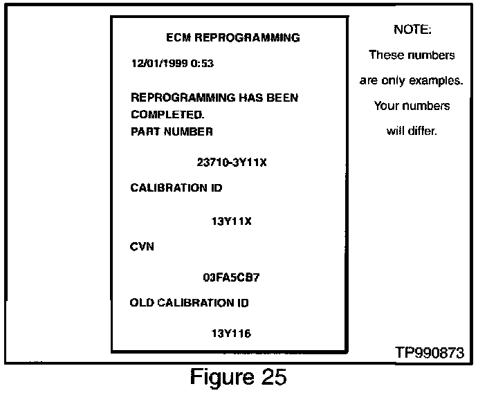 37. Once ECM Reprogramming is done, CONSULT II will print out a report (see Figure 25). Attach this to the repair order for future reference.
