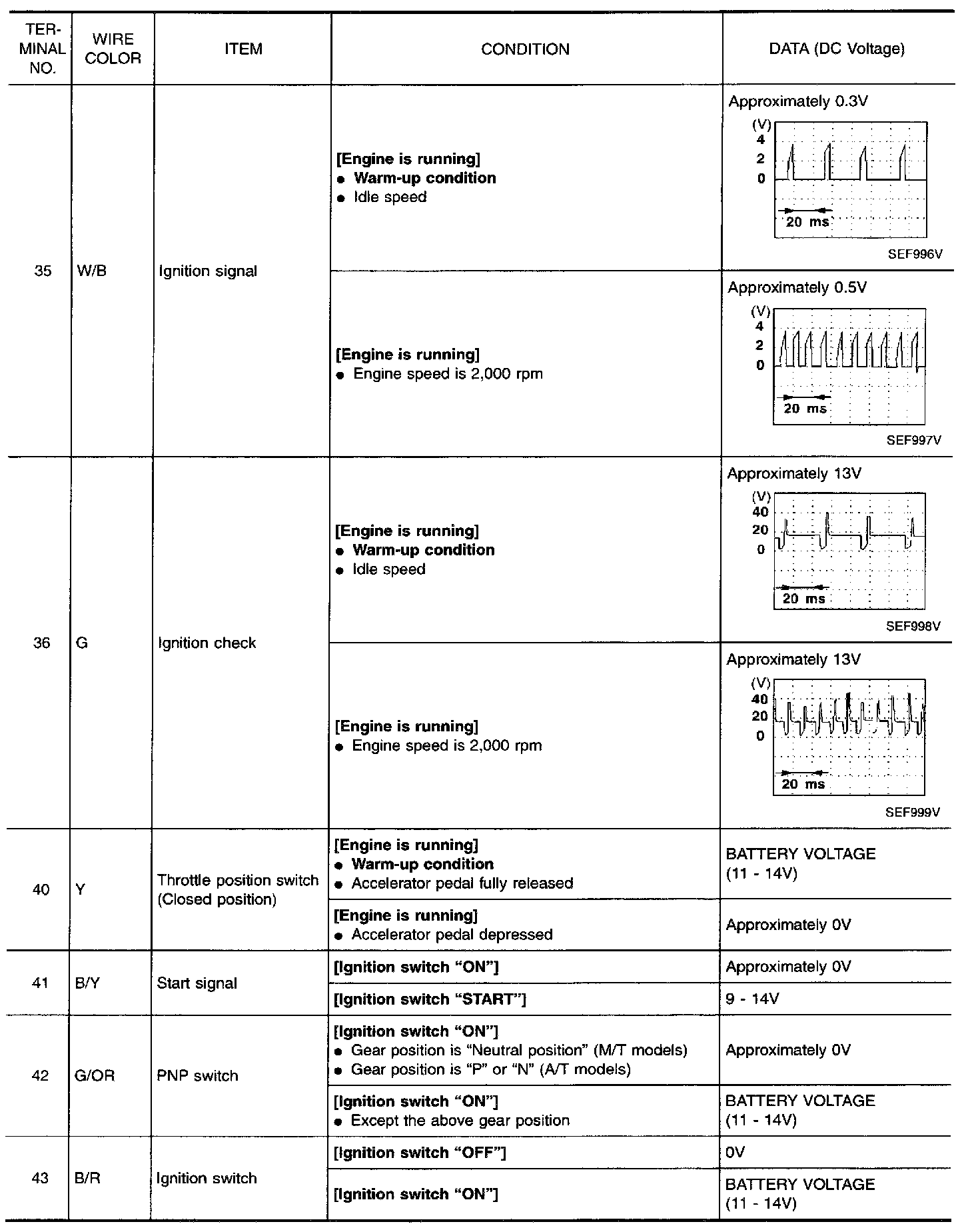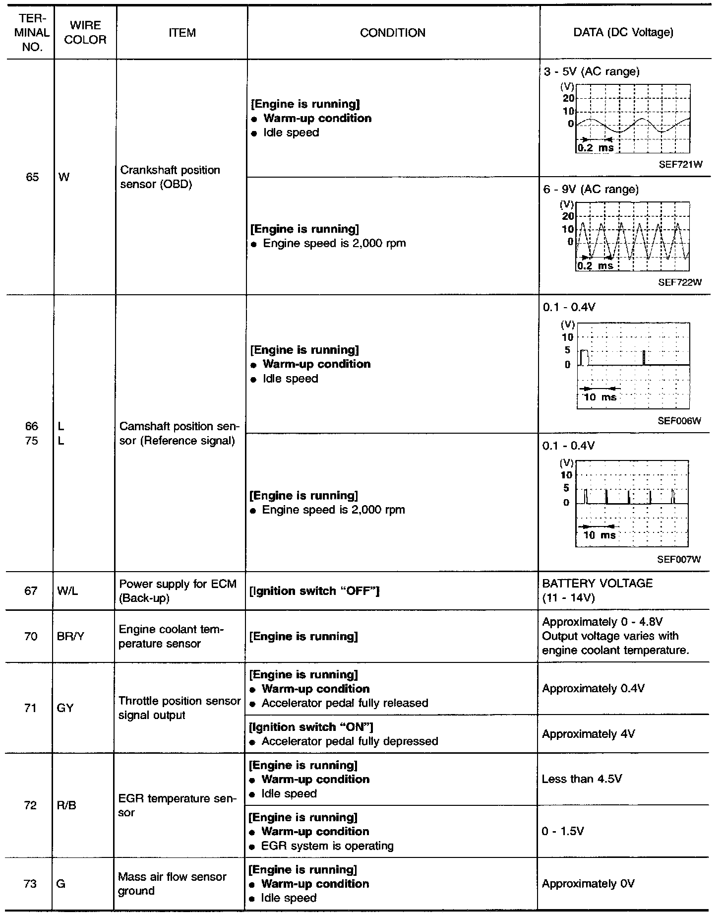 Specification data are reference values and are measured between each terminal and 48 (ECM ground).