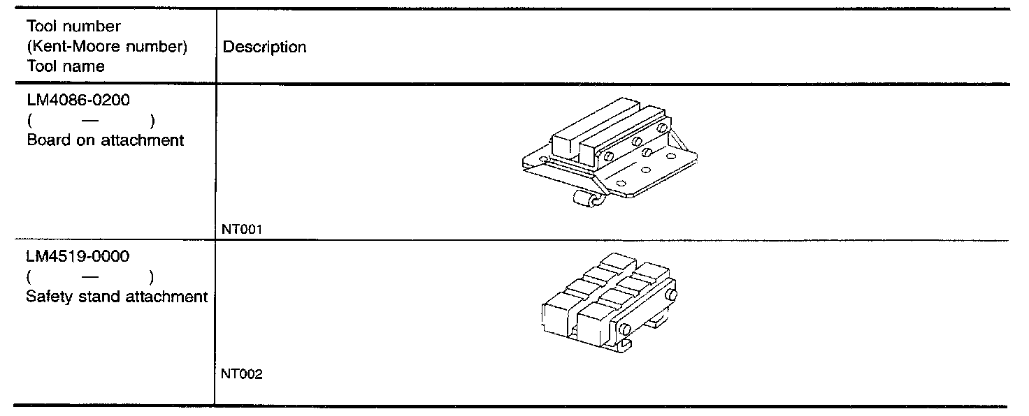 The actual shapes of Kent-Moore tools may differ from those of special service tools illustrated.