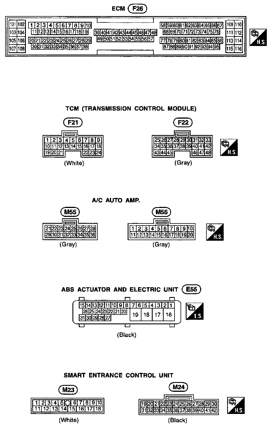 Electrical Units Terminal Arrangement (E55, F21, F22, F26, M23, M24, M55, M56):