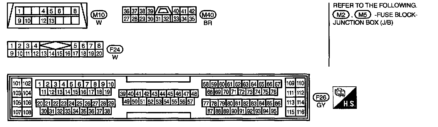Fuse Block - Junction Box (J/B) Terminal Arrangement (B1, E71, E72, E73, M1, M2, M3, M4, M5):