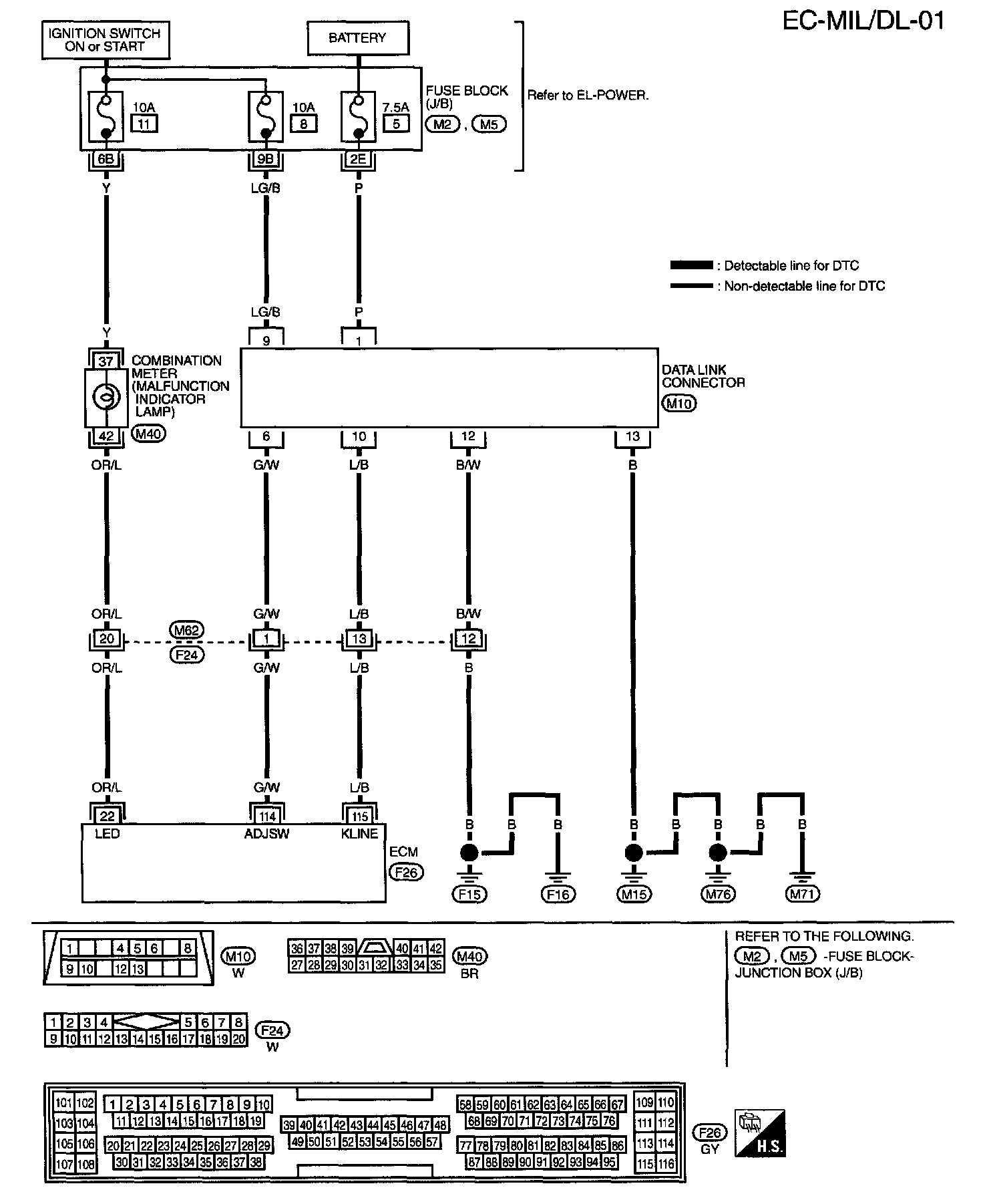 Fuse Block - Junction Box (J/B) Terminal Arrangement (B1, E71, E72, E73, M1, M2, M3, M4, M5):