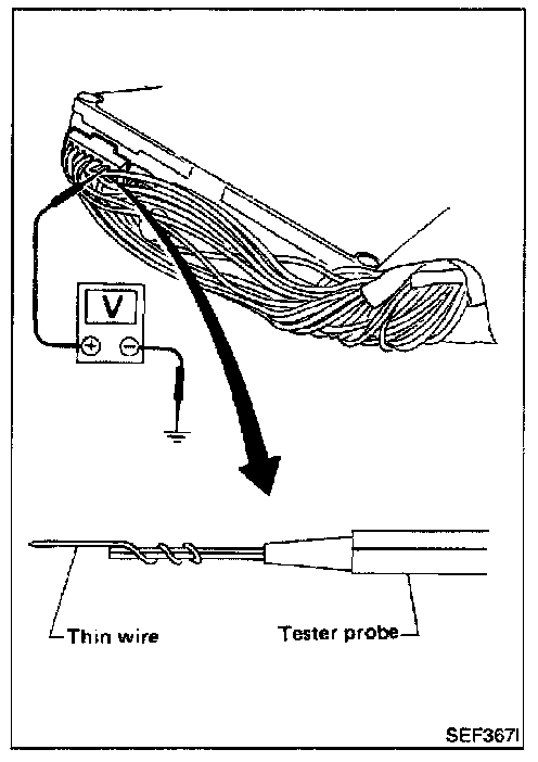 3. Perform all voltage measurements with the connector connected. Extend tester probe as shown to perform tests easily.