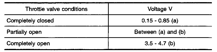 8. Check voltage of "THRTL POS SEN" under the following conditions.