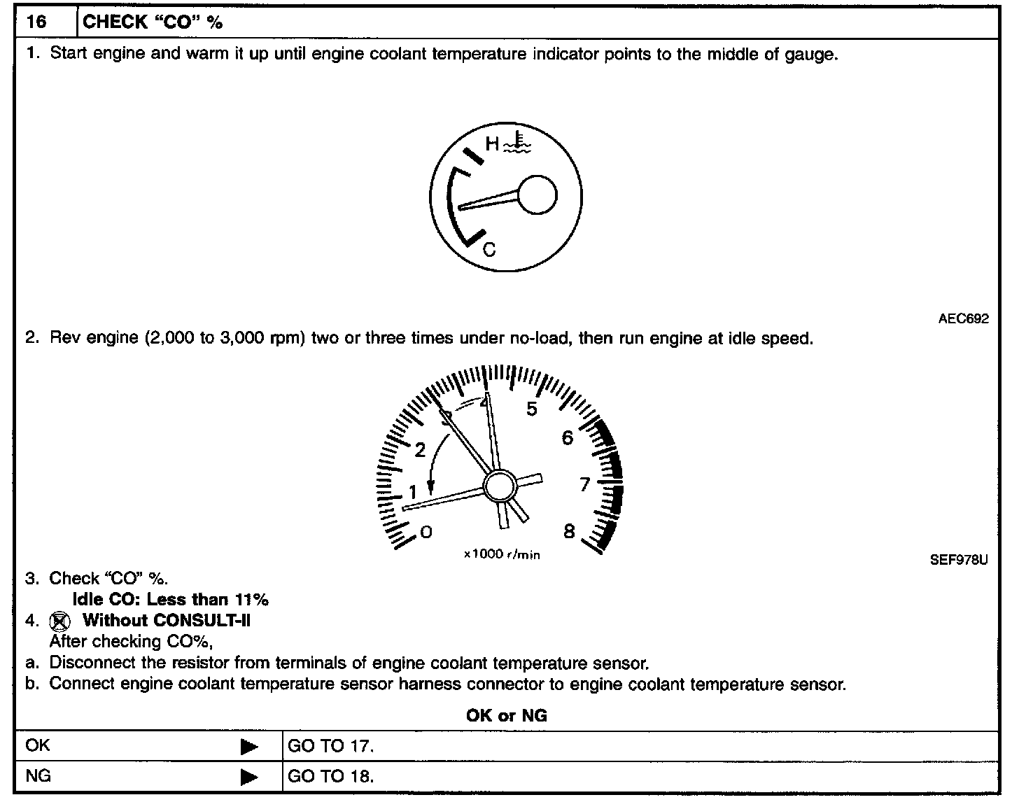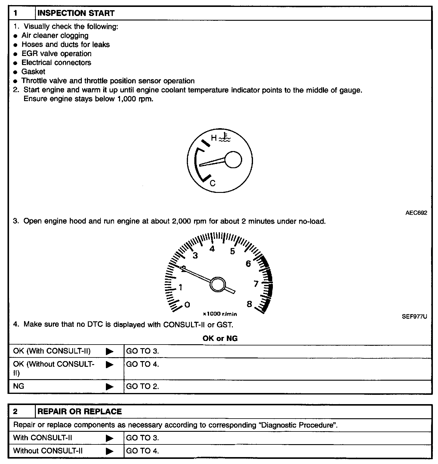 - On models equipped with air conditioner, checks should be carried out while the air conditioner is "OFF".