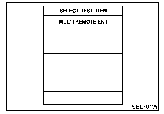 REMOTE CONTROLLER ID SET UP WITH CONSULT-IINOTE: If a remote controller is lost, the ID code of the lost remote controller must be erased to prevent unauthorized use. When the ID code of a lost remote controller is not known, all controller ID codes should be erased. After all ID codes are erased, the ID codes of all remaining and/or new remote controllers must be re-registered.