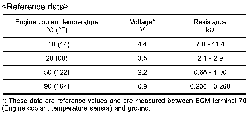 The engine coolant temperature sensor is used to detect the engine coolant temperature. The sensor modifies a voltage signal from the ECM. The modified signal returns to the ECM as the engine coolant temperature input. The sensor uses a thermistor which is sensitive to the change in temperature. The electrical resistance of the thermistor decreases as temperature increases.