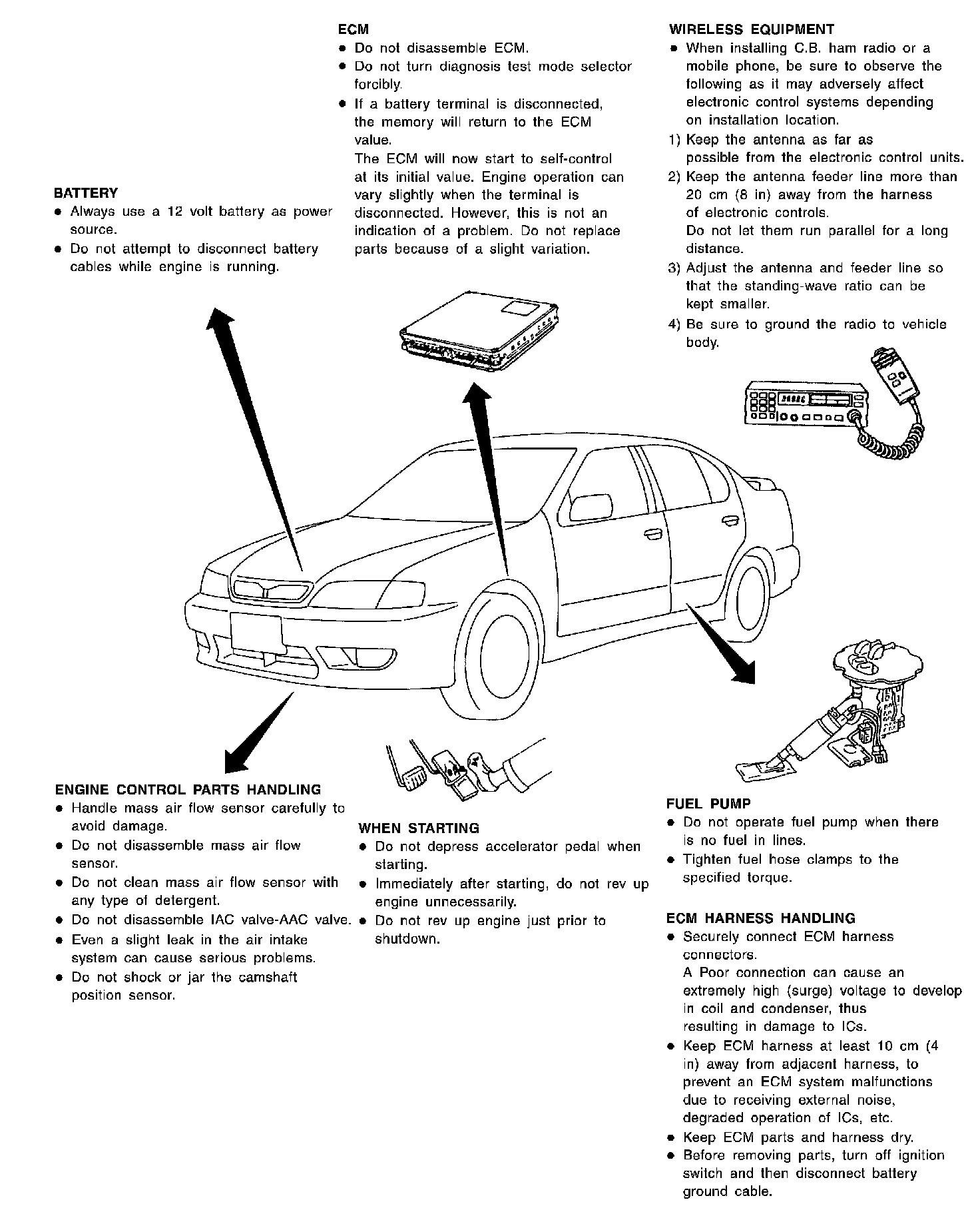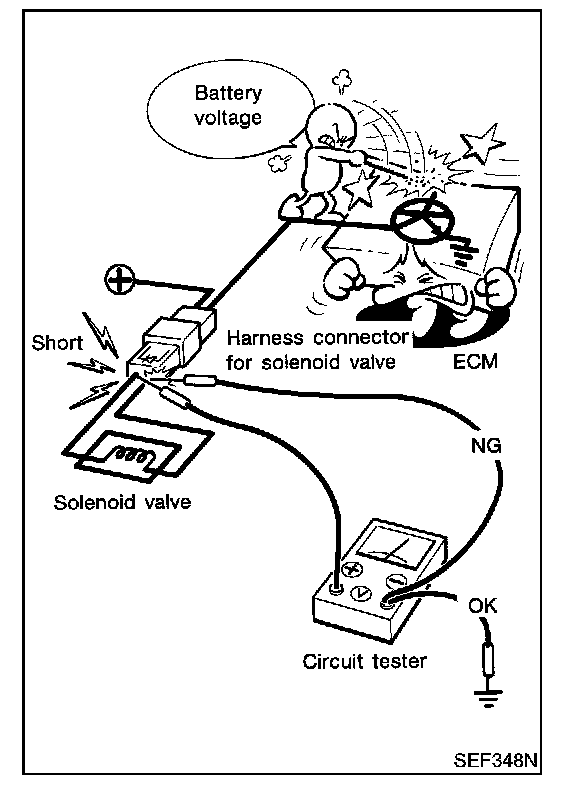- Do not use ECM ground terminals when measuring input/ output voltage. Doing so may result in damage to the ECM's transistor. Use a ground other than ECM terminals, such as the ground.