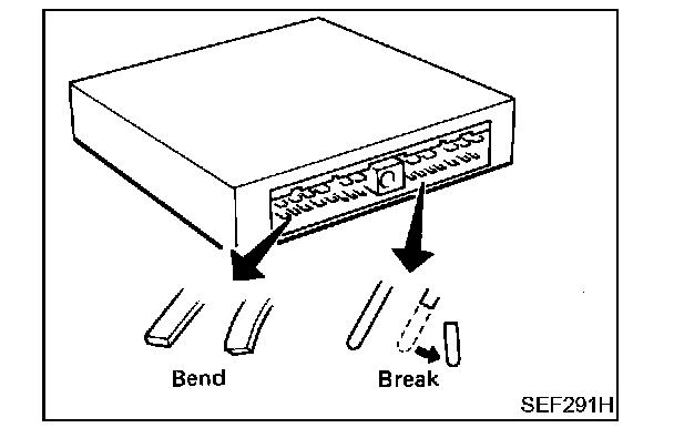 - When connecting or disconnecting pin connectors into or from ECM, take care not to damage pin terminals (bend or break).