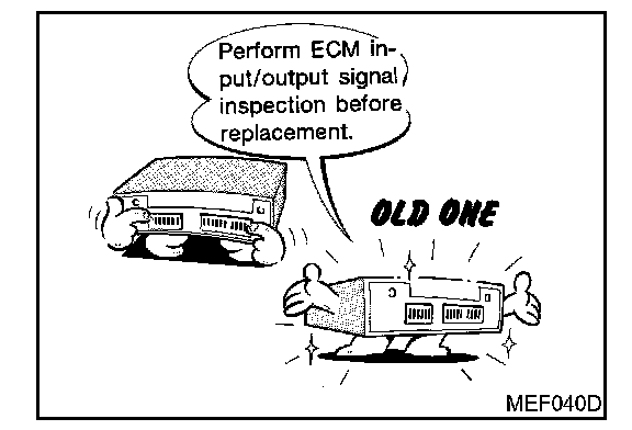 - Before replacing ECM, perform Terminals and Reference Value inspection and make sure ECM functions properly.