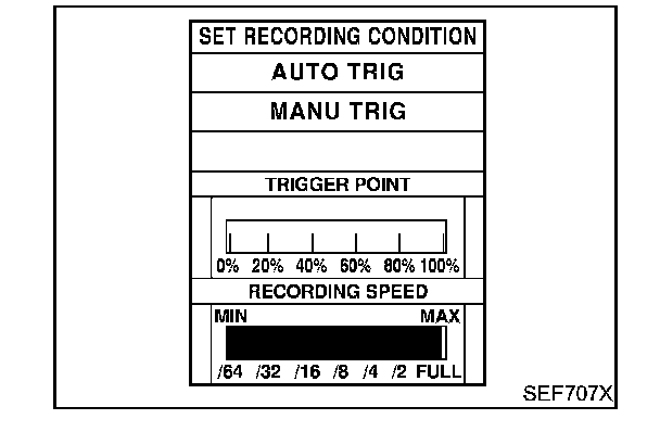 The recording time after the malfunction detection and the recording speed can be changed by "TRIGGER POINT" and "Recording Speed". Refer to CONSULT-II OPERATION MANUAL.