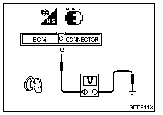 7. Check voltage between ECM terminal 92 (Throttle position sensor signal) and ground under the following conditions.