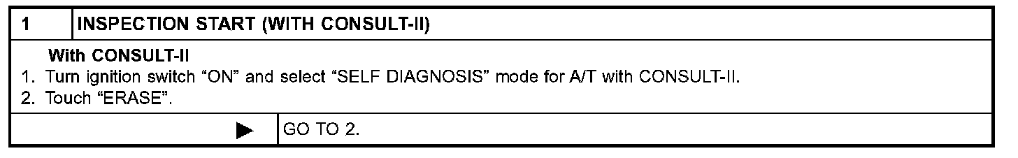 1) Turn ignition switch "ON" and select "DATA MONITOR" mode for A/T with CONSULT-II.
