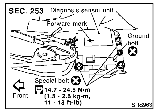 - After replacement of diagnosis sensor unit, perform self-diagnosis for SRS. Refer to "SRS Operation Check" for details.