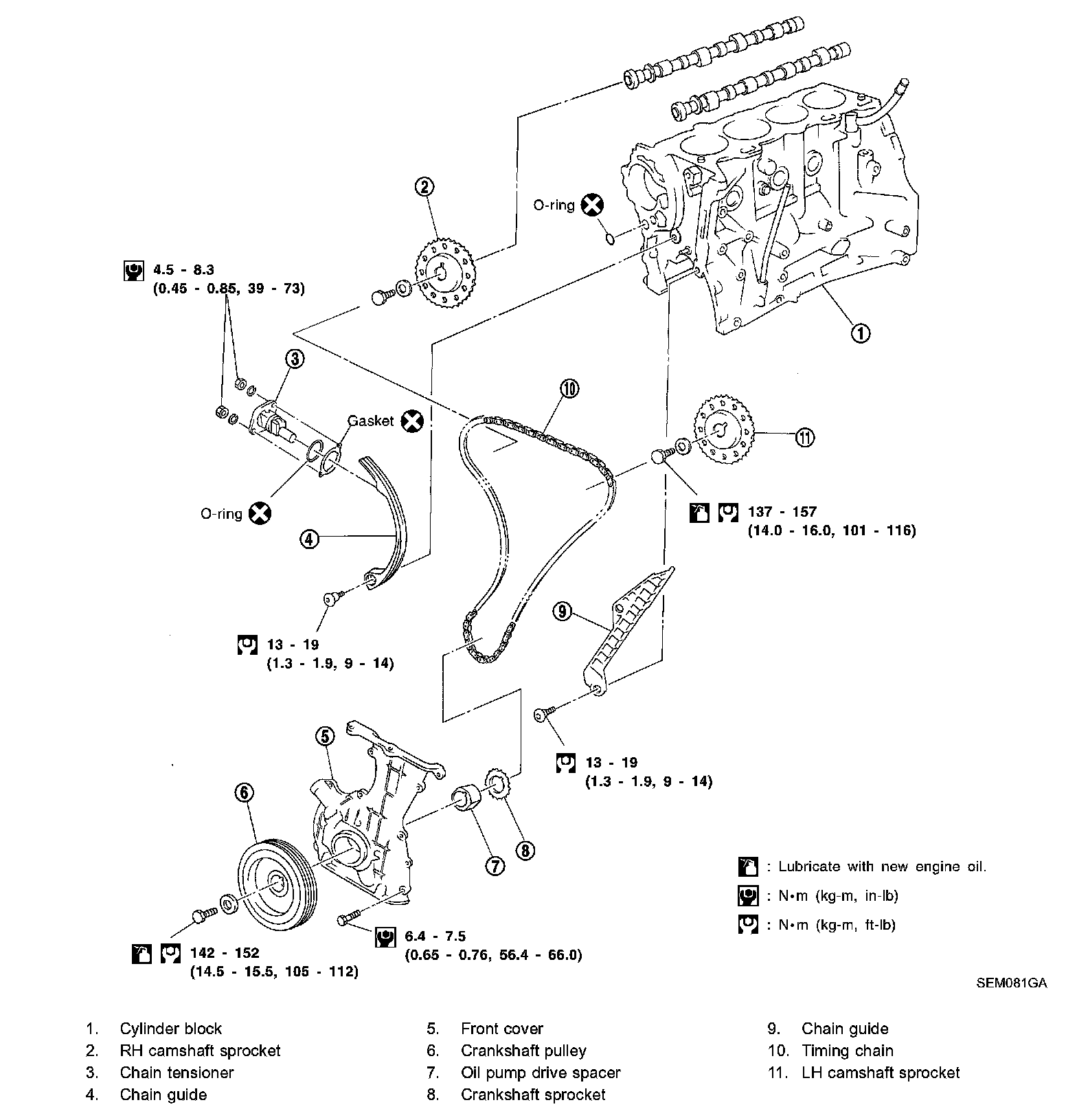 Camshaft Torque:............137 - 157 Nm (14.0 - 16.0 kg-m, 101 - 116 ft. lbs.)