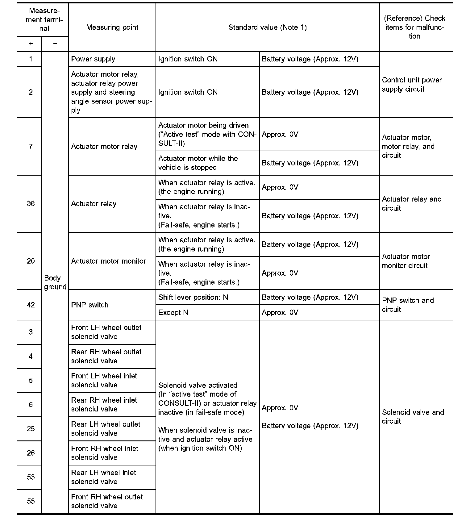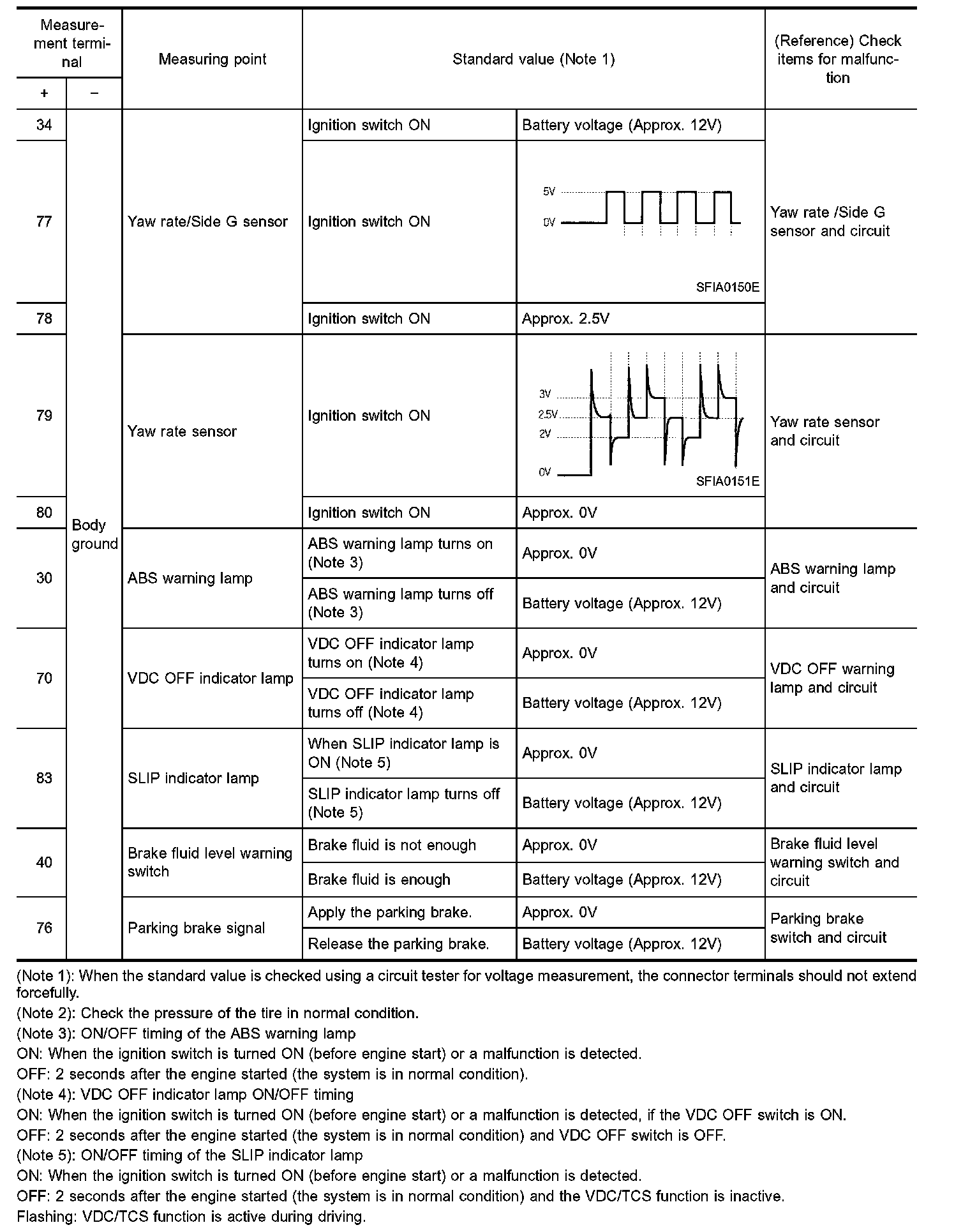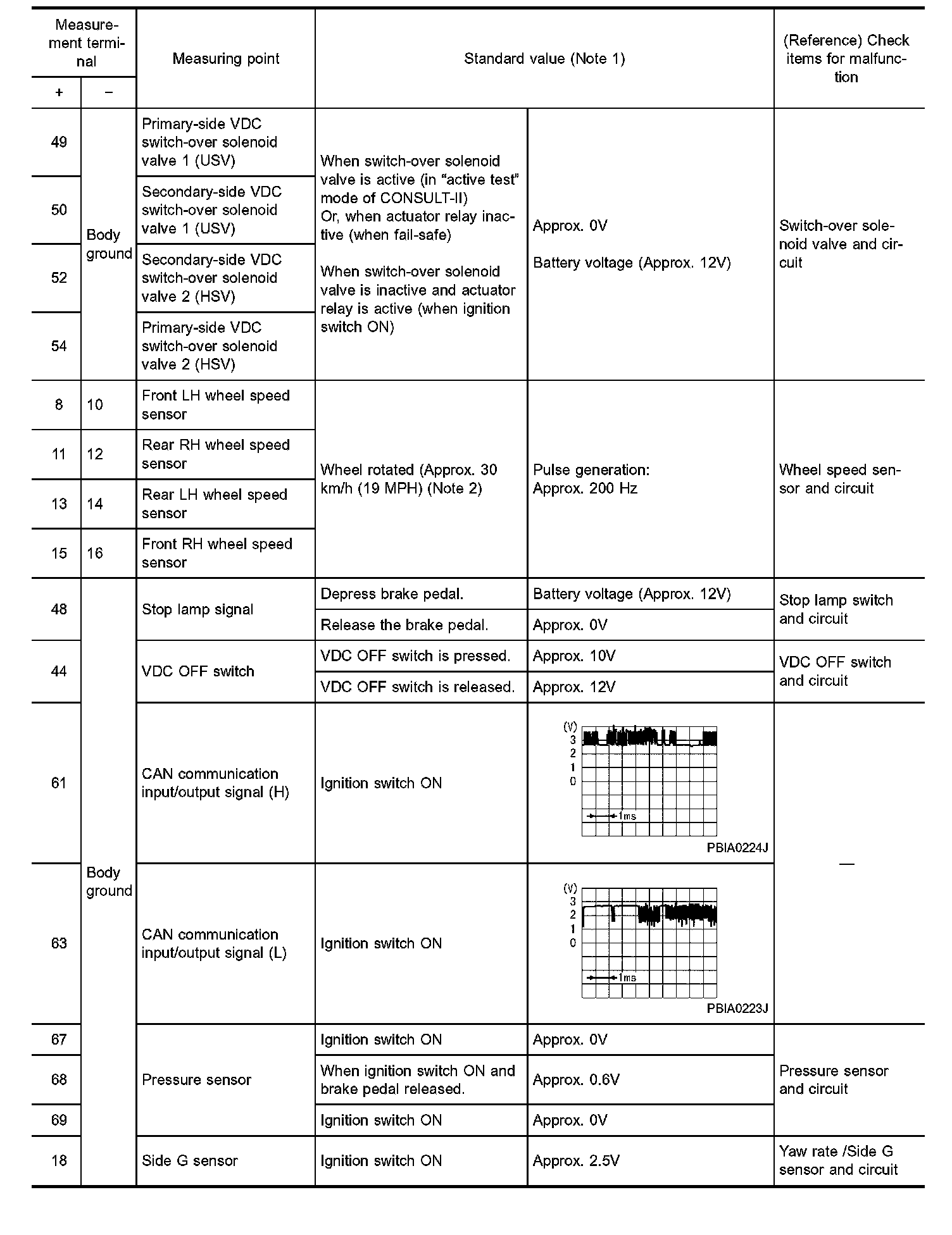 STANDARDS USING A CIRCUIT TESTER AND OSCILLOSCOPECAUTION: Connect the connectors for the VDC/TCS/ABS control unit and actuator, and turn the ignition switch ON.