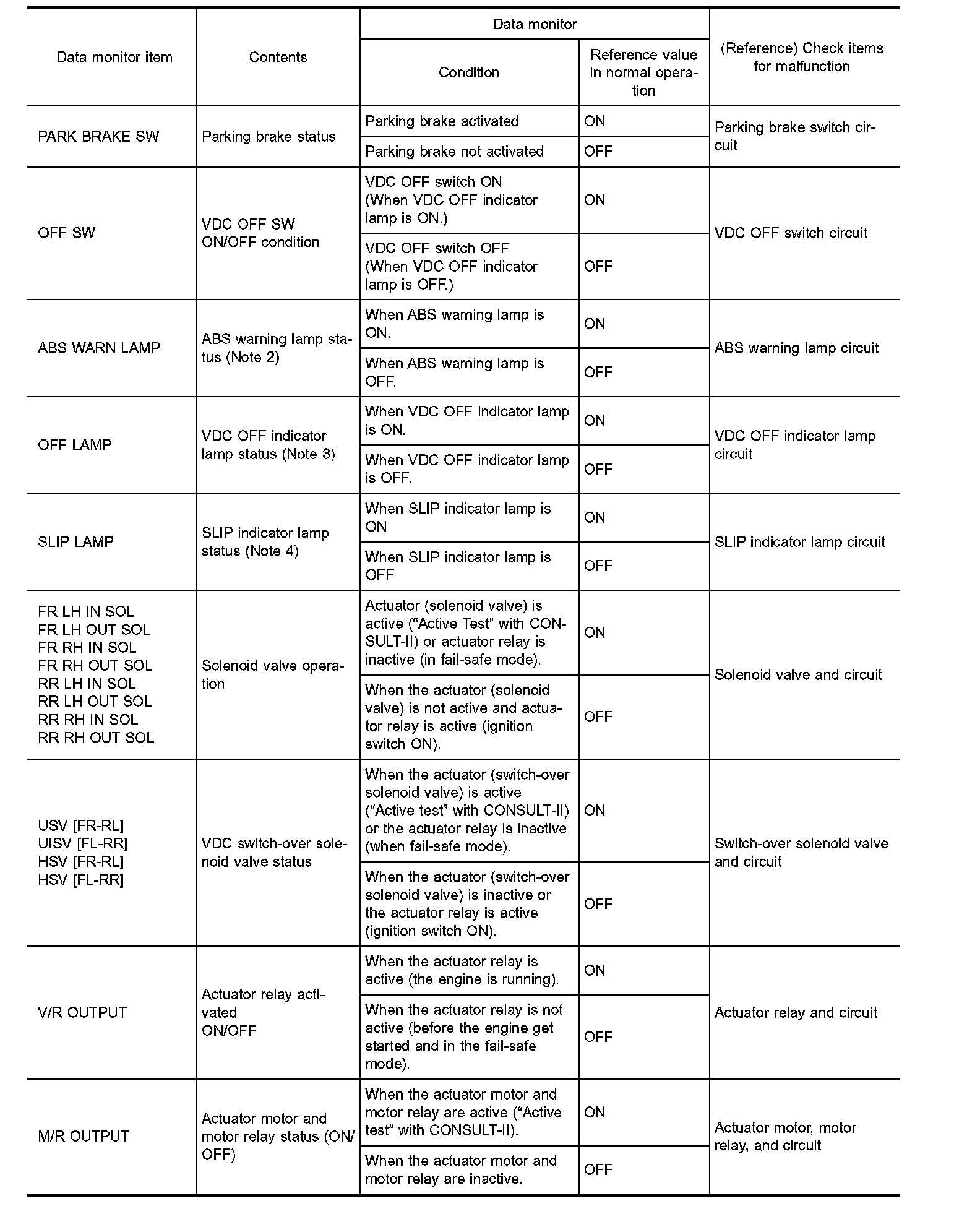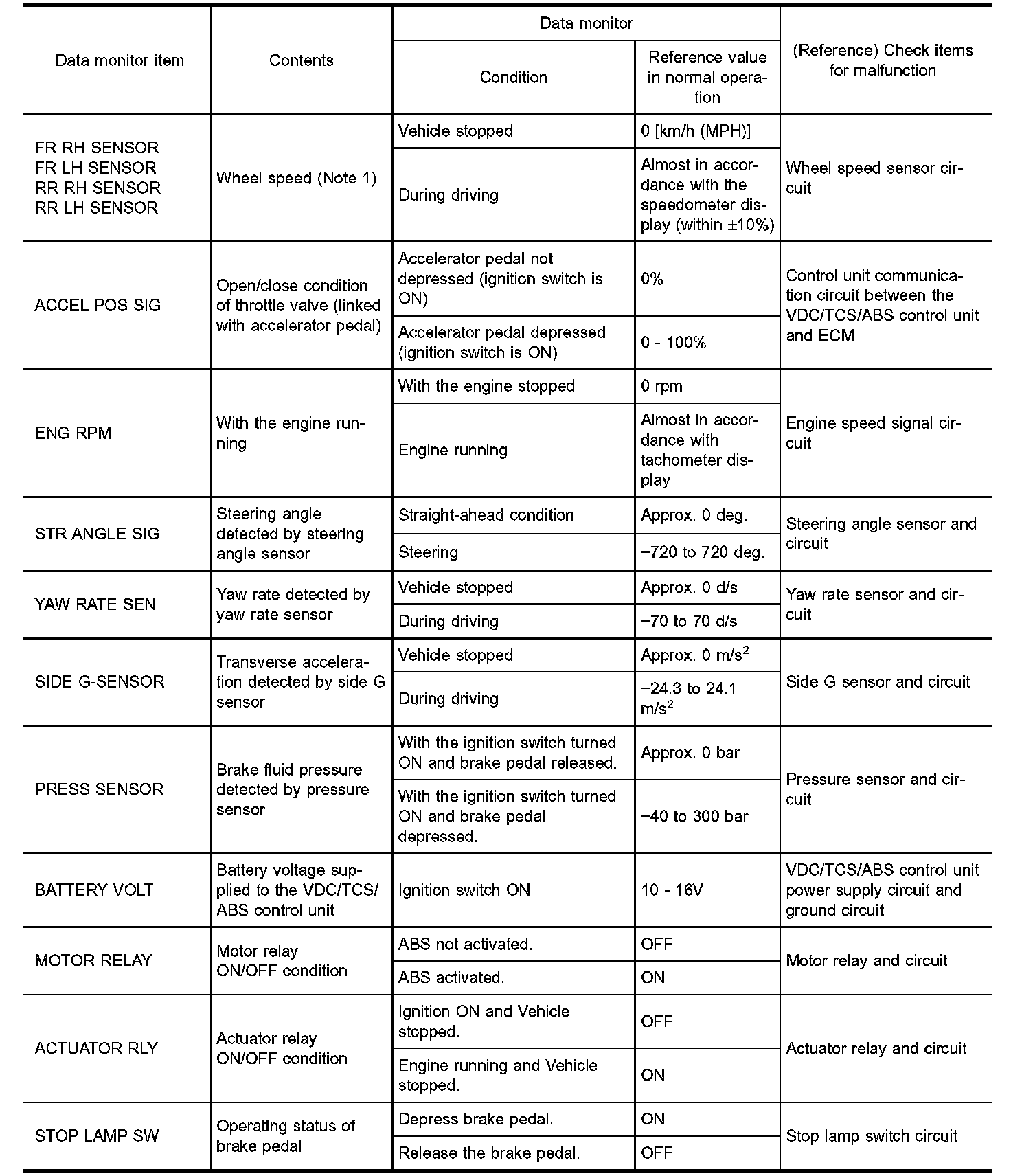CAUTION: The displayed item is the data calculated by the control unit, so it may indicate a normal value even if an output circuit (harness) is open or shorted.