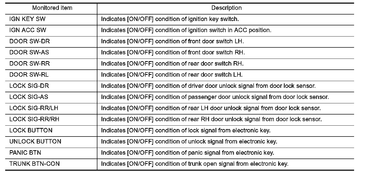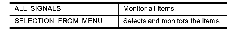 5. If "SELECTION FROM MENU" is selected, touch the desired monitor item. If "ALL SIGNALS" is selected, the all item required to control is monitored.