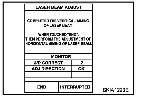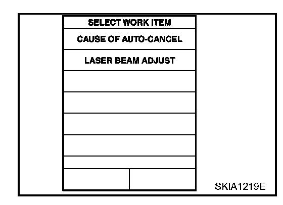 CAUTION: If the adjustment screen does not appear on CONSULT-II 10 sec. After touching "LASER BEAM ADJUST" screen, the following causes may be considered: