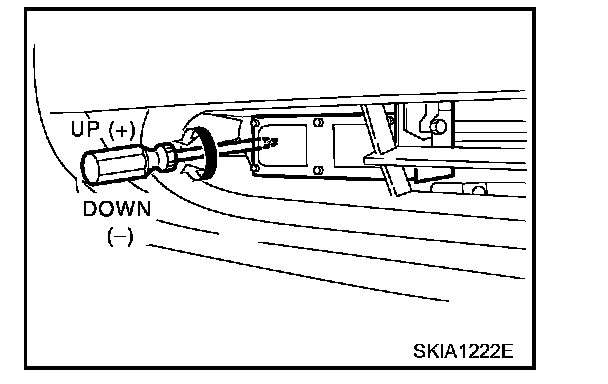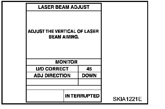 7. After the CONSULT-II displays "ADJUST THE VERTICAL OF LASER" turn the up-down direction adjustment screw until "U/D CORRECT" value is set in the range of ± 4.
