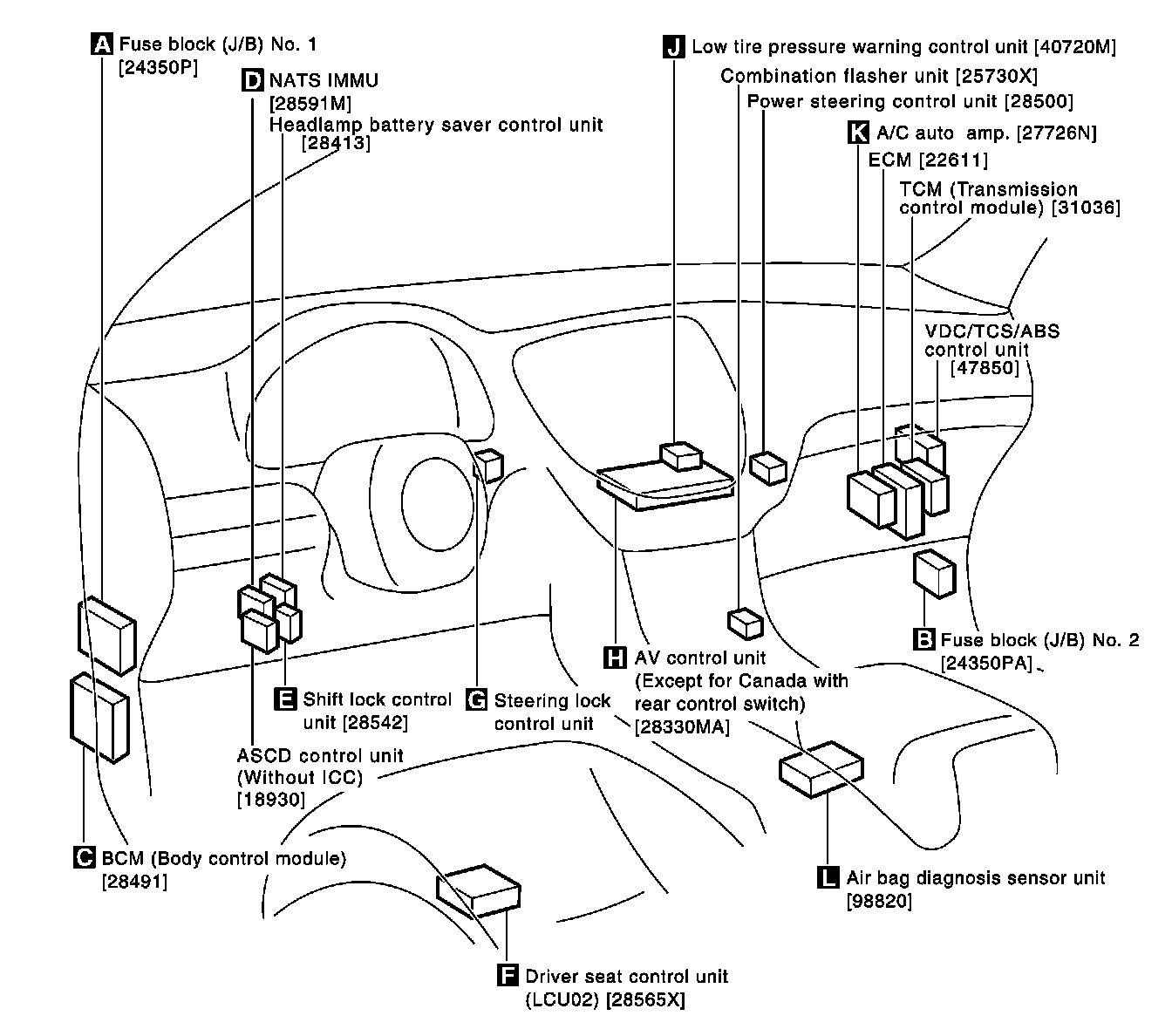 ECM, VDC/TCS/ABS Control Unit, TCM: