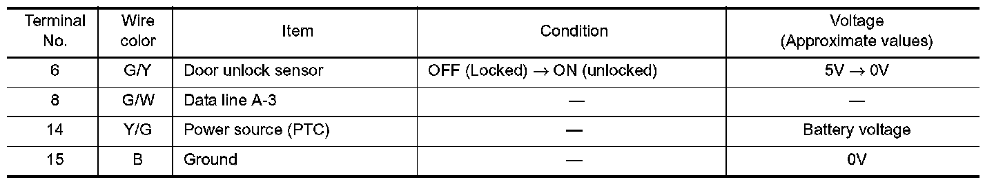 Terminals And Reference Value For Driver Door Control Unit (LCU01):