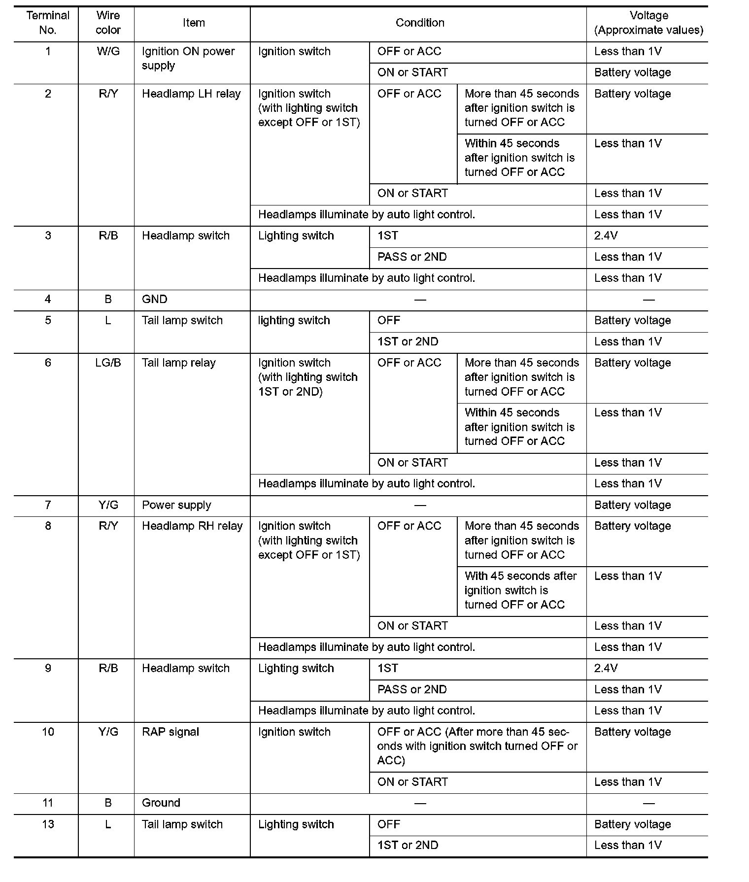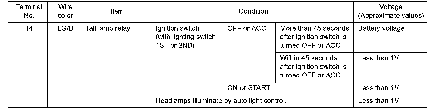 FOR USA - Terminals And Reference Value For Battery Saver Control Unit Part 2: