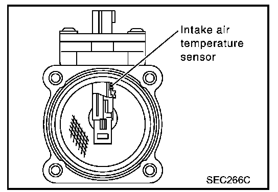 The mass air flow sensor is placed in the stream of intake air. It measures the intake flow rate by measuring a part of the entire intake flow. It consists of a hot film that is supplied with electric current from the ECM. The temperature of the hot film is controlled by the ECM a certain amount. The heat generated by the hot film is reduced as the intake air flows around it. The more air, the greater the heat loss. Therefore, the ECM must supply more electric current to maintain the temperature of the hot film as air flow increases. The ECM detects the air flow by means of this current change.