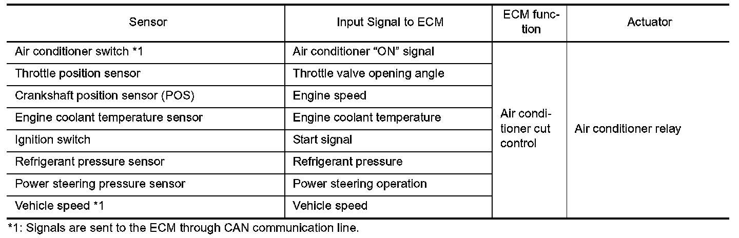 This system improves engine operation when the air conditioner is used. Under the following conditions, the air conditioner is turned off.