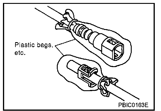 - To keep clean the connecting portion and to avoid damage and foreign materials, cover them completely with plastic bags or something similar.