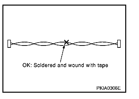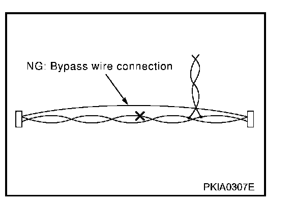 - Do not perform bypass wire connections for the repair parts. (The spliced wire will become separated and the characteristics of twisted line will be lost.)