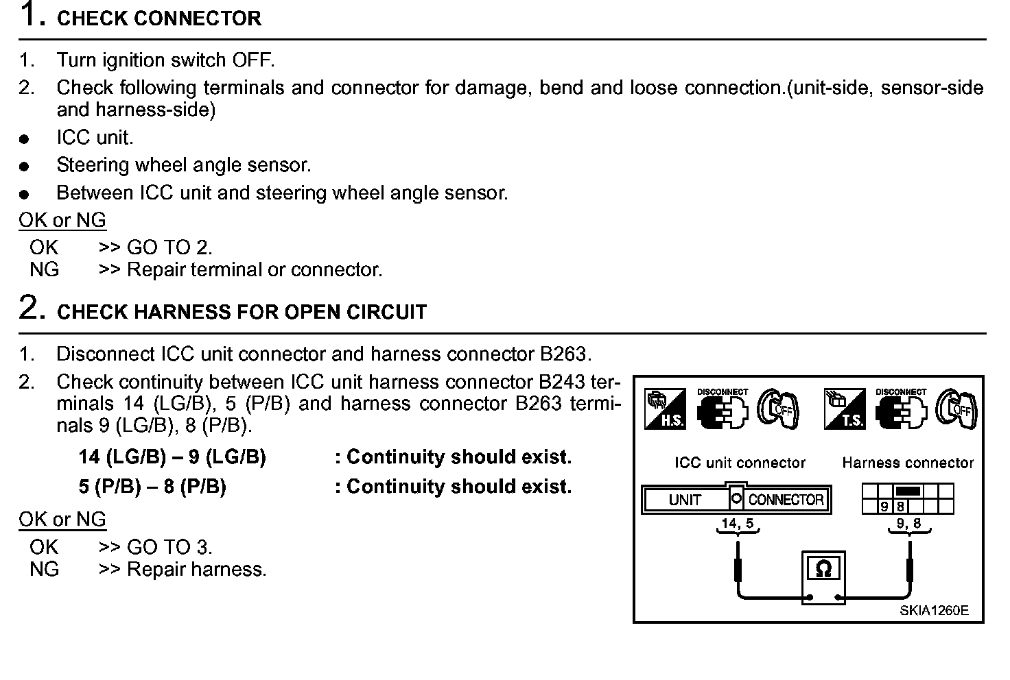 Circuit Check Between ICC Unit And Steering Wheel Angle Sensor Step 1 - 2: