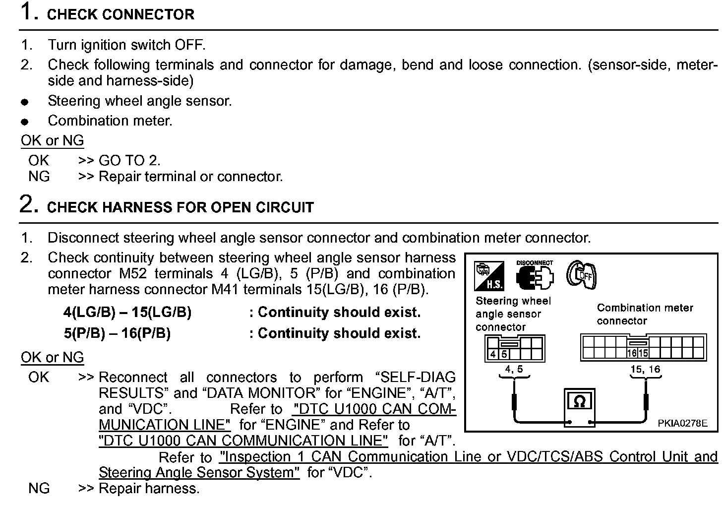 Circuit Check Steering Wheel Angle Sensor and Combination Meter