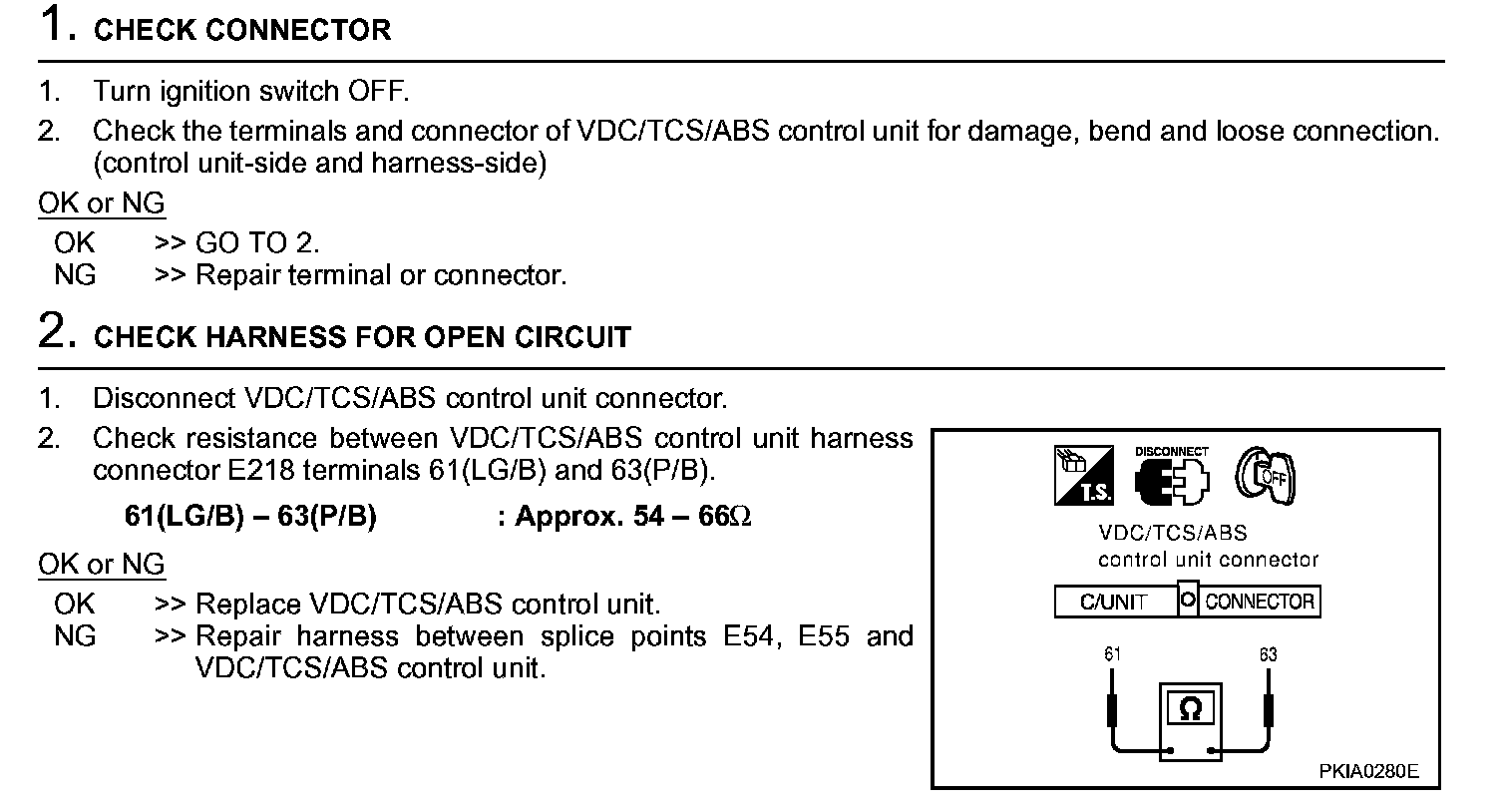 VDC/TCS/ABS Control Unit Circuit Check Step 1 - 2: