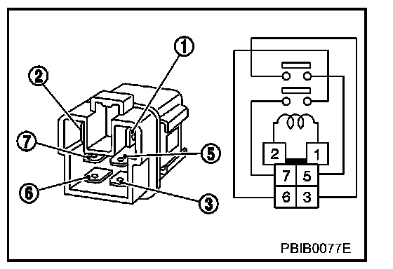 Check continuity between relay terminals 3 and 5, 6 and 7.