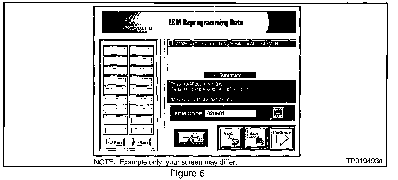 4. Click the "Continue" button on the ECM Data Reprogramming screen (see Figure 6) to proceed to CONSULT-II setup.