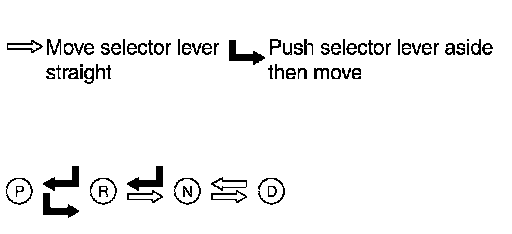 2. When selector lever is operated, the driver should be able to feel a firm clicking response from the lever each time it is set to a lever position correctly. Confirm that the actual shift position on the transmission and the position indicated by the position indicator lamp correctly correspond each other without misalign