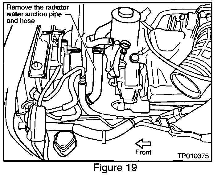4. Remove the radiator water suction pipe and hose (see Figure 19).