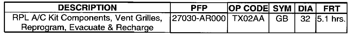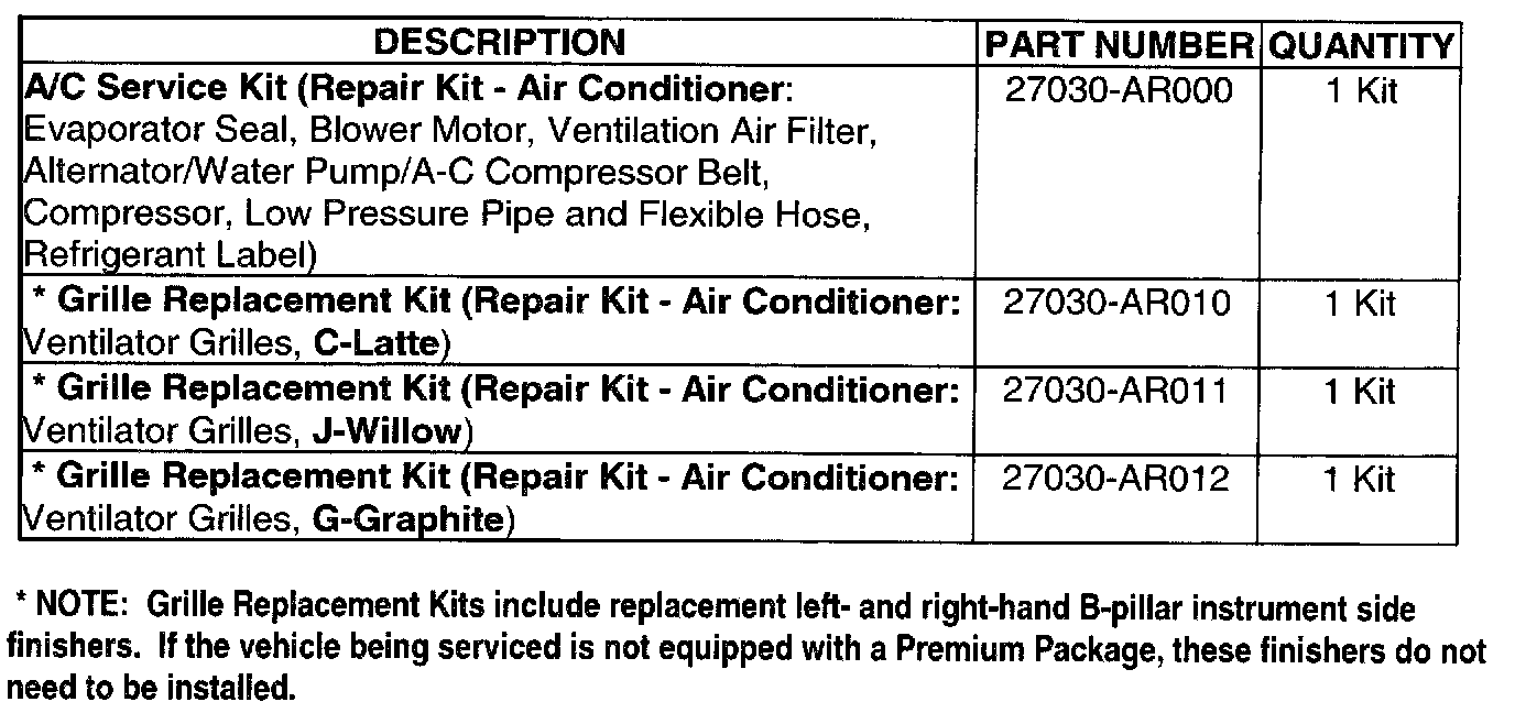 Complete all of the steps in the Service Procedure provided in this bulletin and use the A/C Service kit and color appropriate Grille Replacement kit shown in the PARTS INFORMATION section of this bulletin to resolve this incident, if it should occur.
