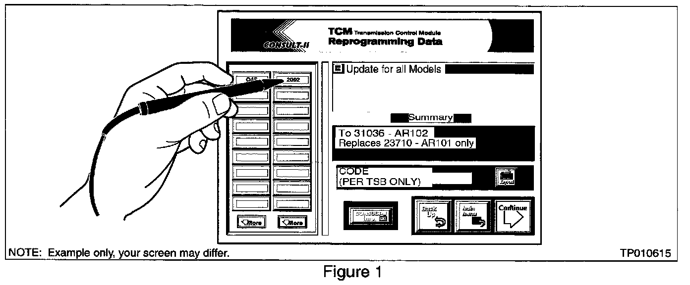 40. Select the correct TCM program to install from the choices on the CONSULT-II screen (see Figure 10).