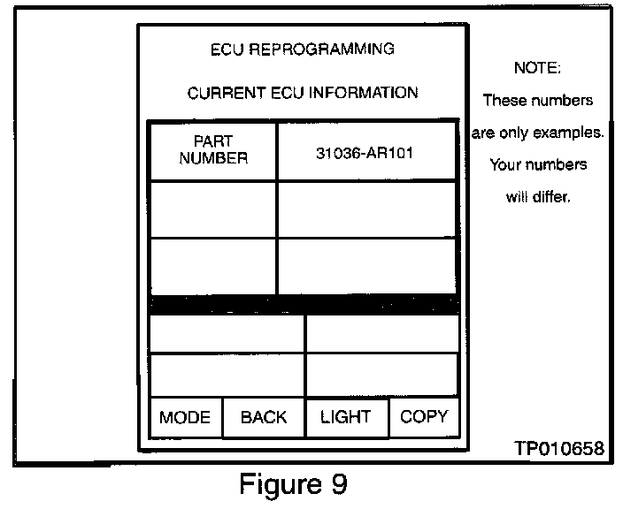 37. Press "CHECK TCM P/N" to confirm (i.e., take note of) the current TCM part number on the vehicle to be reprogrammed (see Figure 9).